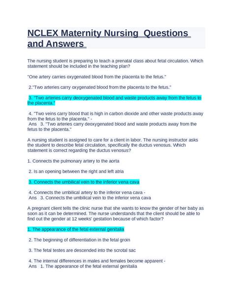 Read Maternity Nclex Questions And Answers Epub